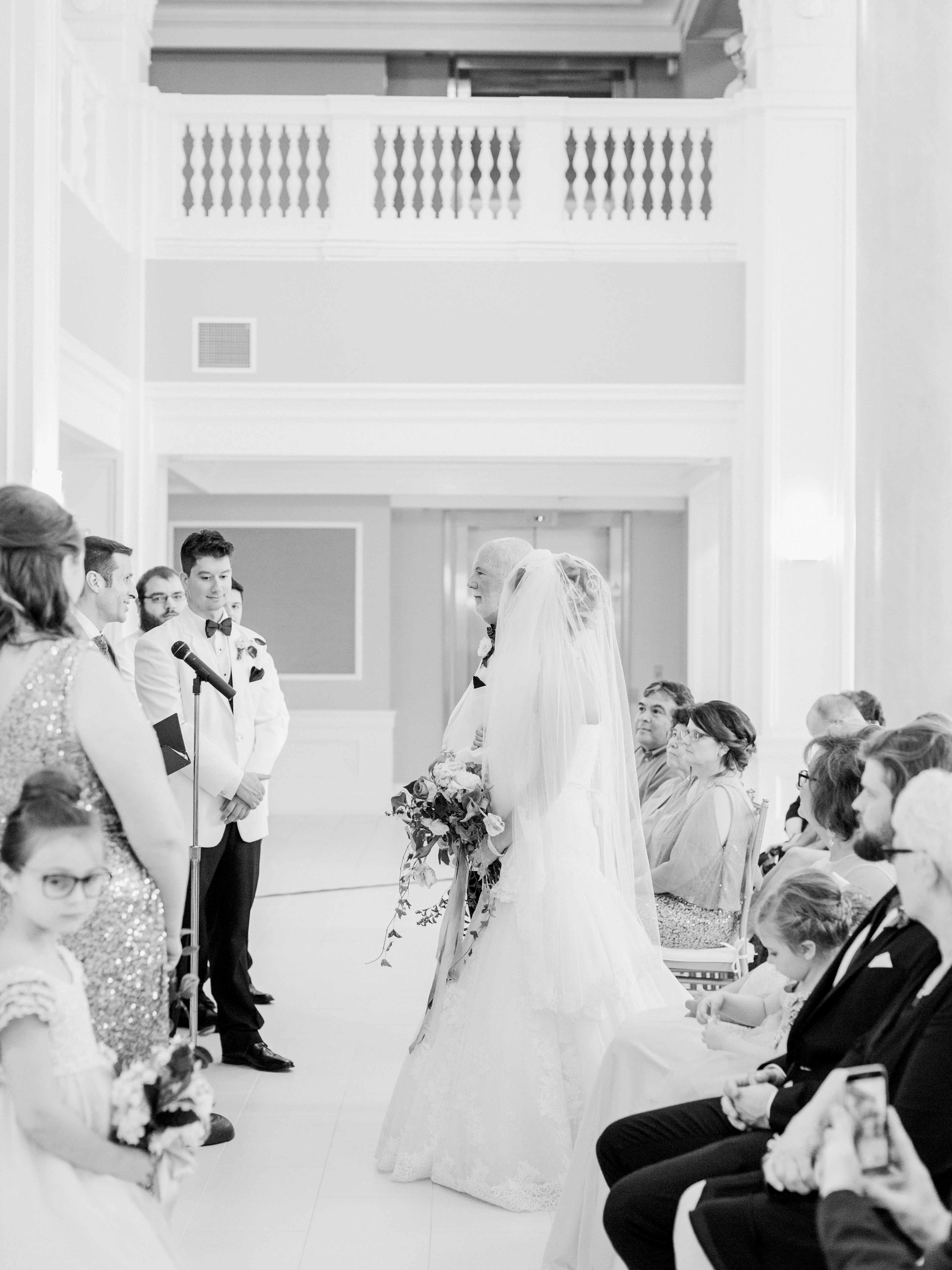 Part 1 of this day shared all the pre-ceremony fun. The romantic first look. And all the charming details. We’re now entering the ceremony site, which was the historic lobby of The Durant Hotel. Natural light lover’s, this is one of the best venues in existance. There’s so much charm and history here, we could have left the entire area completey undecorated and still had a breathetaking backdrop. We’re extra thankful for the lobby’s beauty as it started to rain just as we were hoping to do a few outdoor wedding party portraits. However, this wasn’t even an issue when you find a place this pretty.